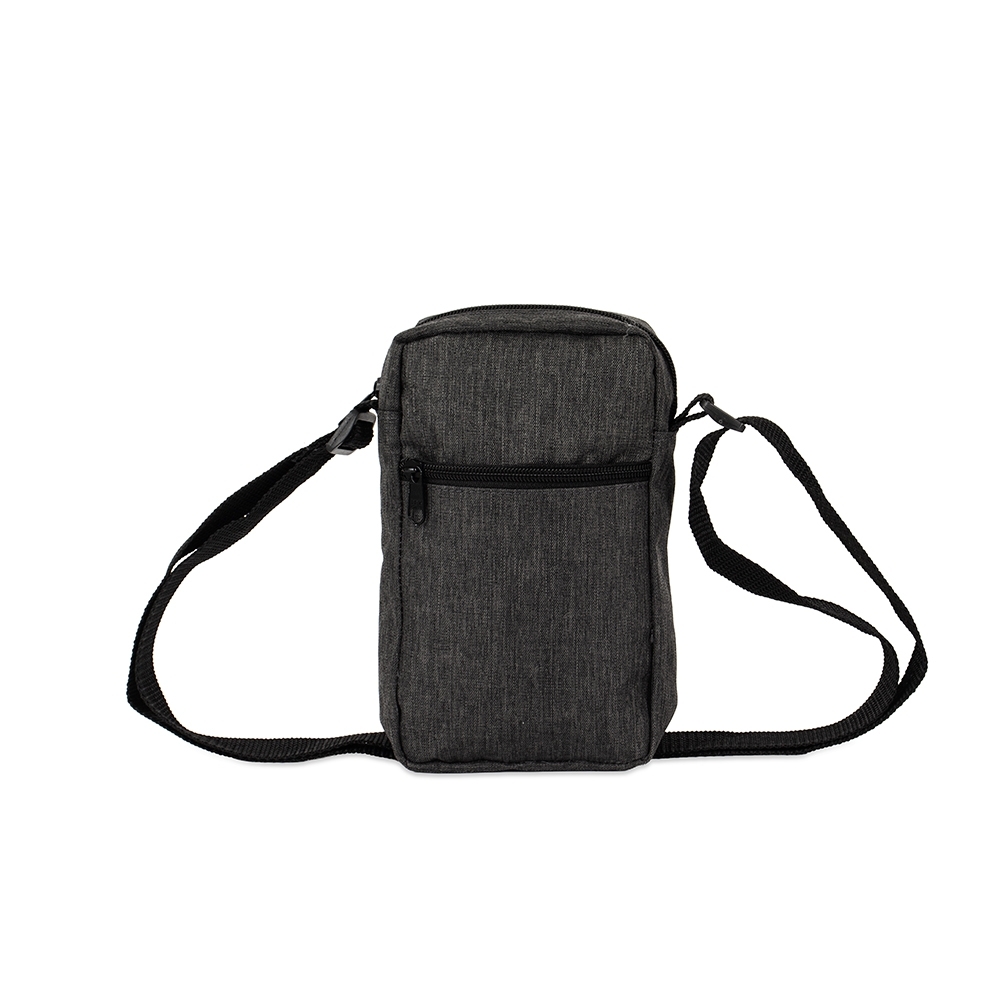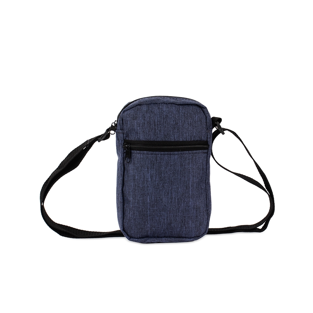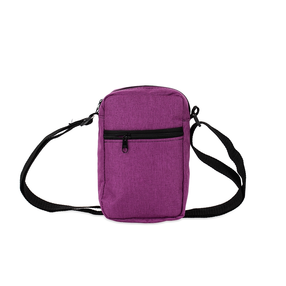 Bolsa de ombro resistente à água, confeccionada em poliéster mesclado com PVC, com fechamento em zíper e alça ajustável. Possui divisória em tela de nylon no compartimento interno e um bolso frontal para a organização de objetos.