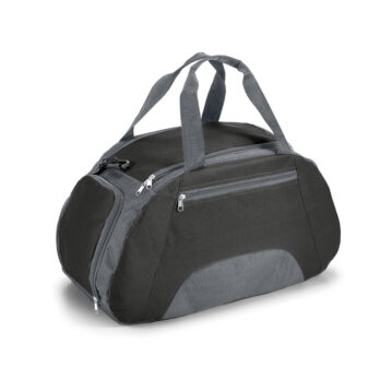 Bolsa esportiva em 600D com fundo em placa semi-rígida. Bolso frontal e bolso lateral para calçado, ambos com zíper. Alça de ombro ajustável. Capacidade até 30 L. 520 x 300 x 255 mm