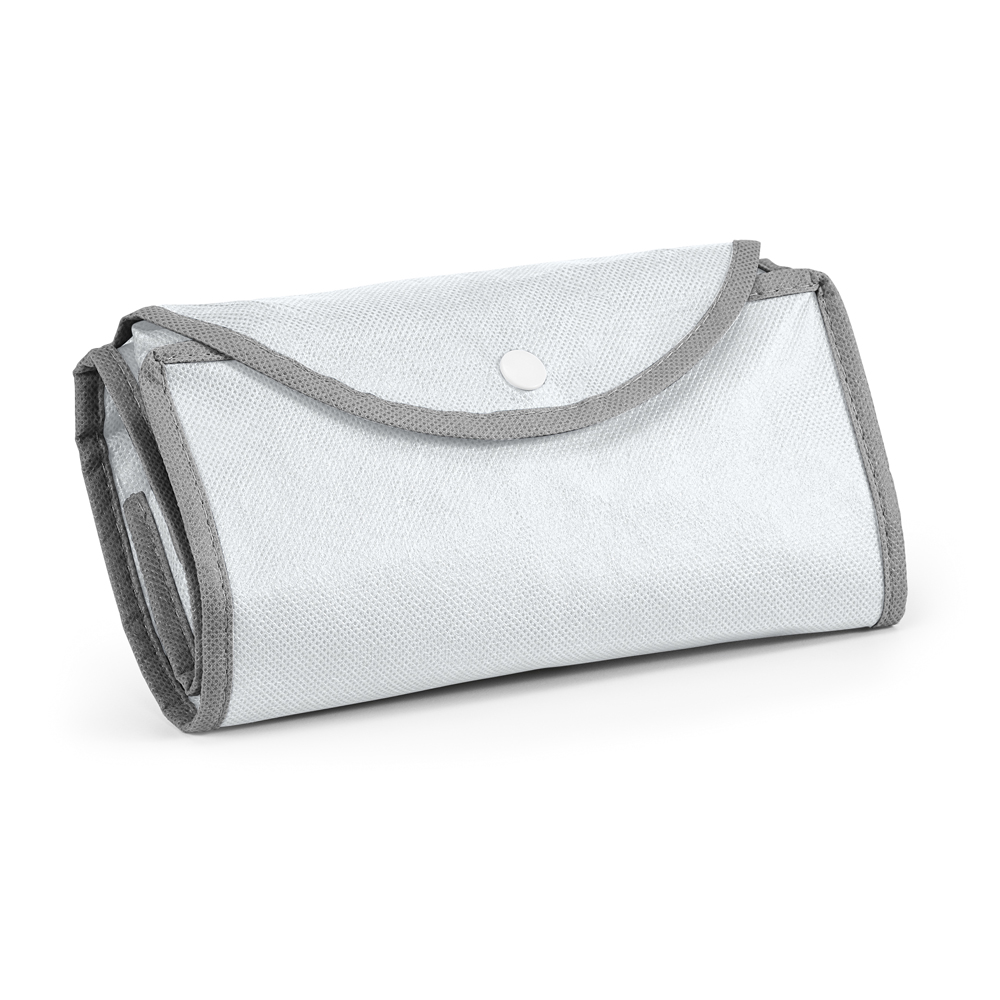 Sacola dobrável em non-woven (80 g/m²) com alças de 65 cm. Fornecida desdobrada. Dobrado: 200 x 120 mm | Aberto: 450 x 400 x 200 mm