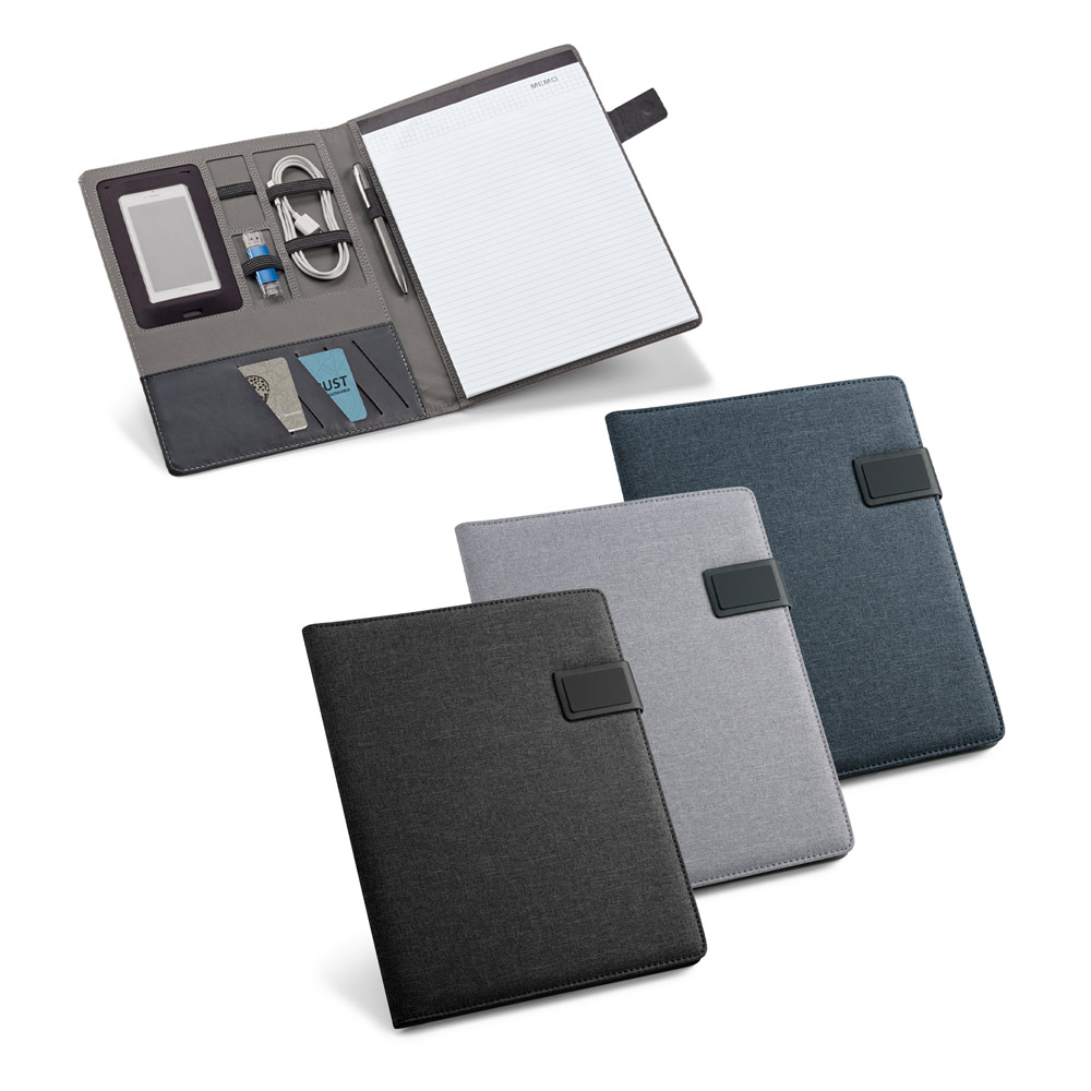 Caderno B6 de capa dura com 160 páginas lisas em cor marfim, suporte para esferográfica (não inclusa) e bolso interior. 120 x 180 mm