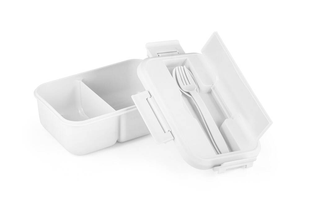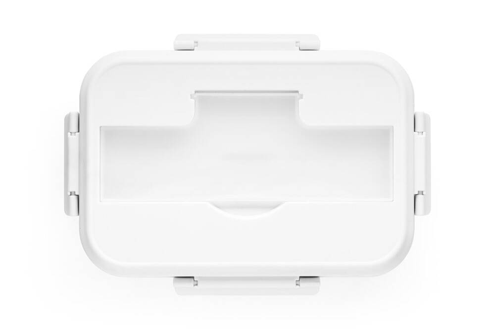 Marmita em PP, com tampa com compartimento para talheres (inclusos). A caixa é apta para micro-ondas, retirando a tampa. Não aconselhável para líquidos. Capacidade 1 L. Certificação EU Food Grade. 210 x 145 x 80 mm