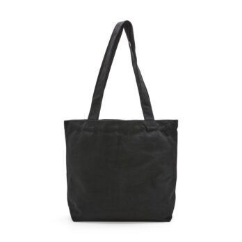 Sacola em lona resistente a respingos dágua. Possui duas alças fixadas por costura interna.
