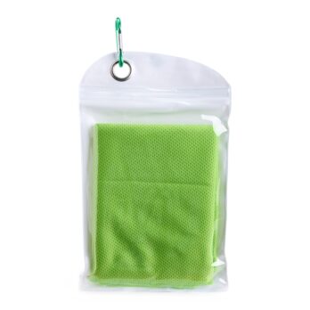Toalha refrescante feita em elastano, ideal para aliviar o calor. Para ativar o resfriamento, basta molhar a toalha, torcê-la levemente e colocá-la no pescoço para aproveitar a sensação refrescante. Acompanha embalagem reutilizável em PVC com mosquetão para transporte.